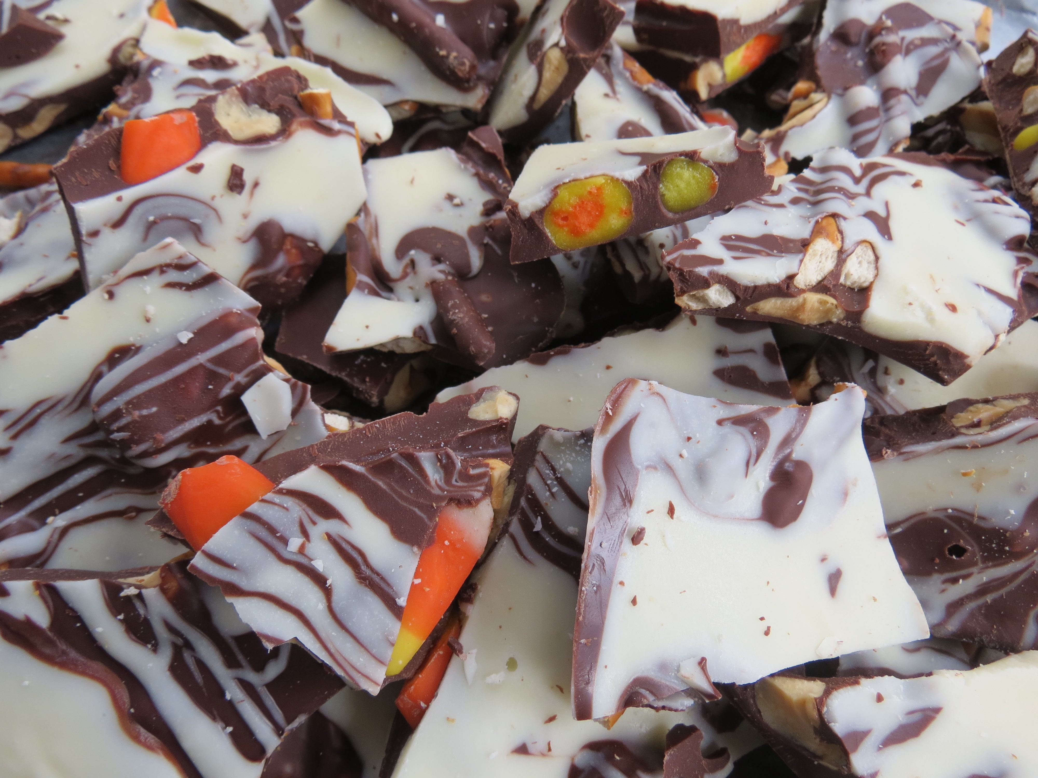 This Halloween chocolate bark is very easy and fun to make. Kids love to get involved in the whole process. It is also delicious. All you need is candy, pretzels, salted peanuts an