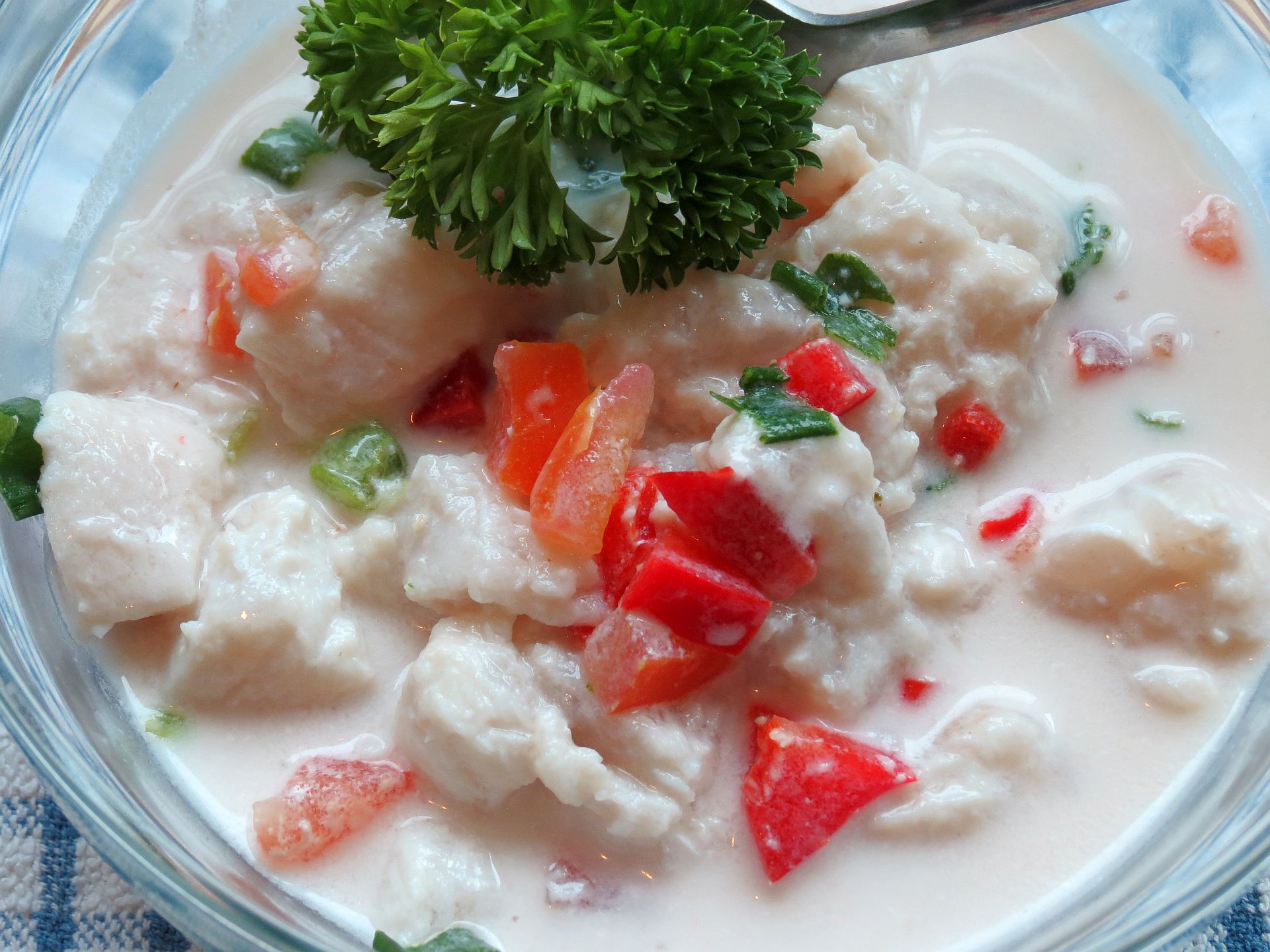 Esta receta de ceviche con coco es de Fiji. Se hace con pescado blanco, jugo de limón, crema de coco, tomates, morrones, chiles y cebollita verde. Esta receta de ceviche con coco