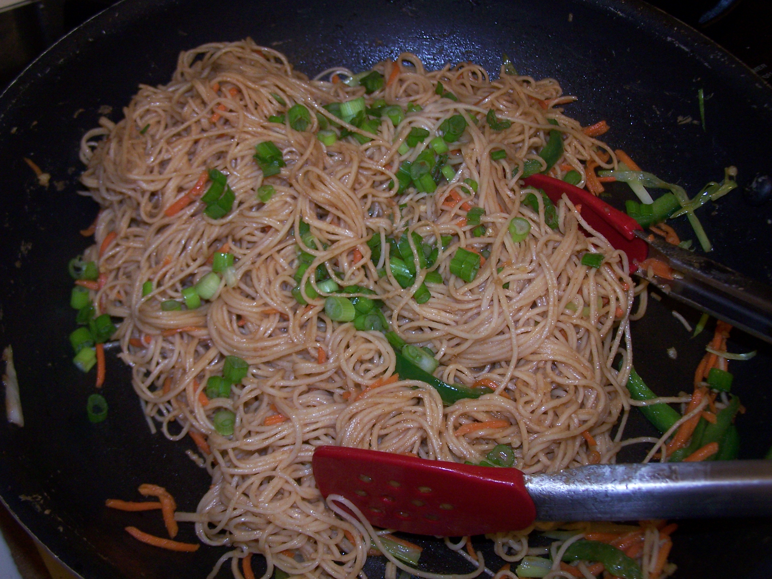 Thai peanut noodles are down right delicious. They are very easy to make and everyone loves them. This version is vegetarian but feel free to add chicken or shrimp to it if you lik
