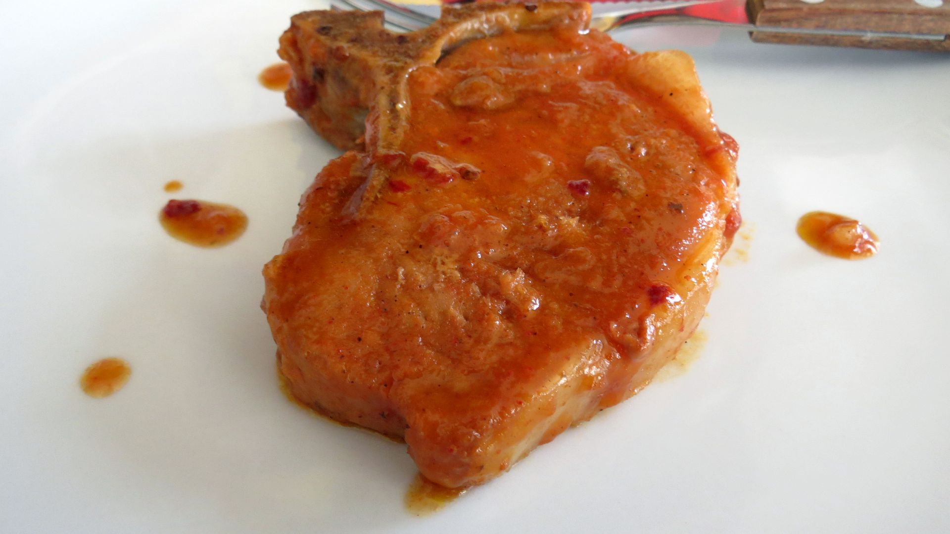 This smothered pork chops recipe is very simple to make. We are going to rub the chops in a brown sugar and paprika rub and then make a sauce with ketchup, orange juice and chipotl