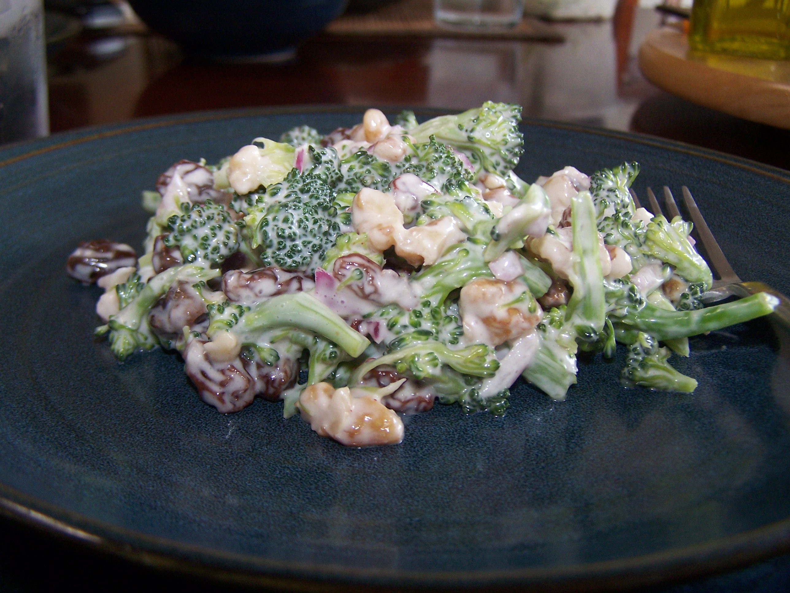This broccoli salad is very easy to make and is loaded with flavor. It has a bit of cinnamon in the dressing which really gives it an edge. This broccoli salad goes very well as a