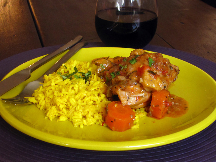 This stew is spicy, juicy and quite a treat. I used a whole chicken which I cut into 8 pieces. However, you can go ahead and use legs and thighs if you prefer not to go through tha